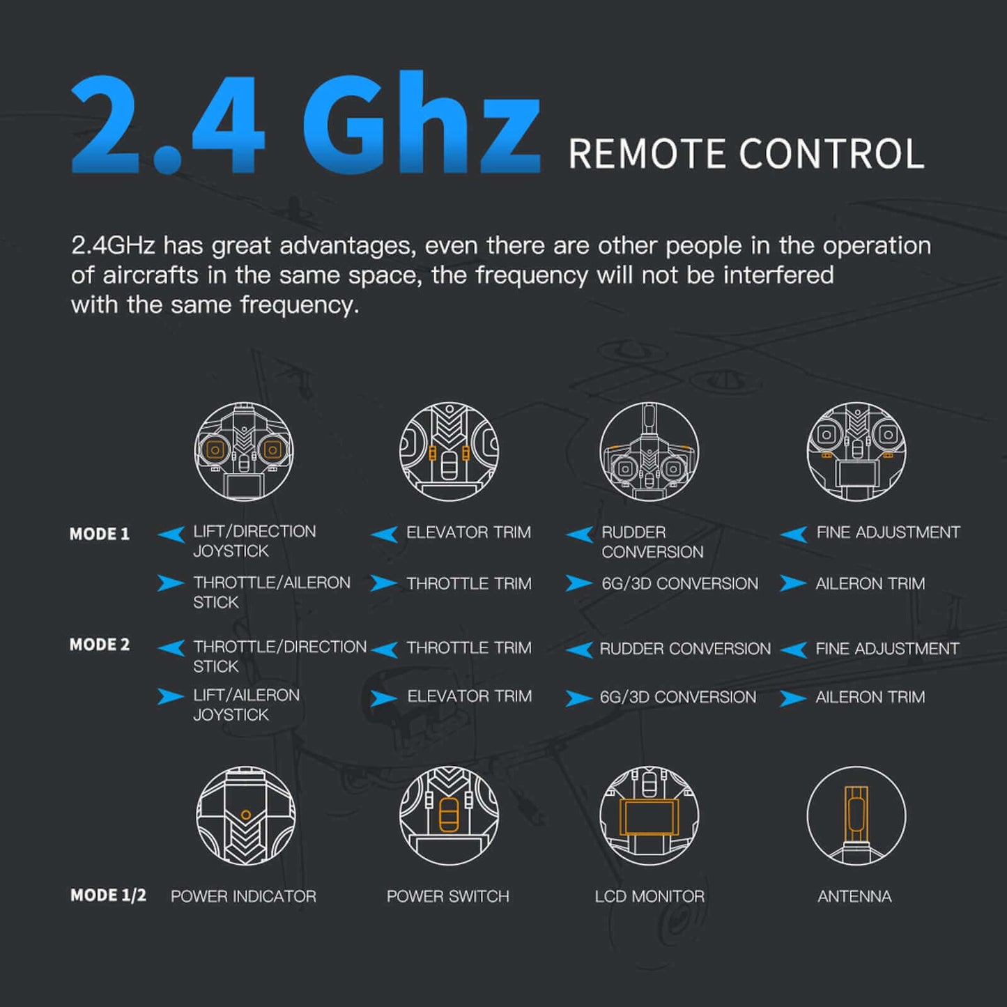• Fernbedienungsmodus: 2,4-G-Fernbedienung