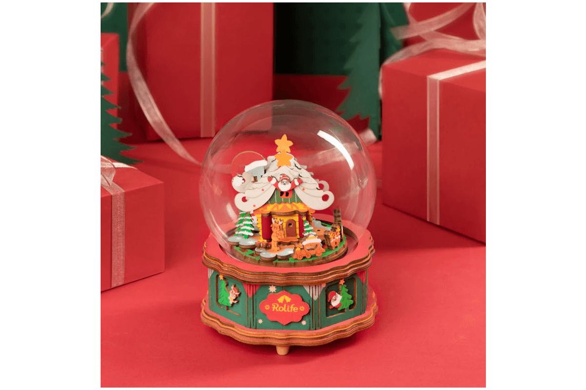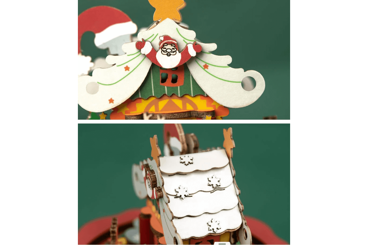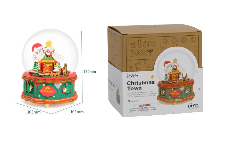 Introducing the Robotime DIY Music Box AM46 - Christmas Town, complete with essential tools and an English instruction manual. This exclusive Christmas music box is designed to bring warmth and joy to your holiday season.