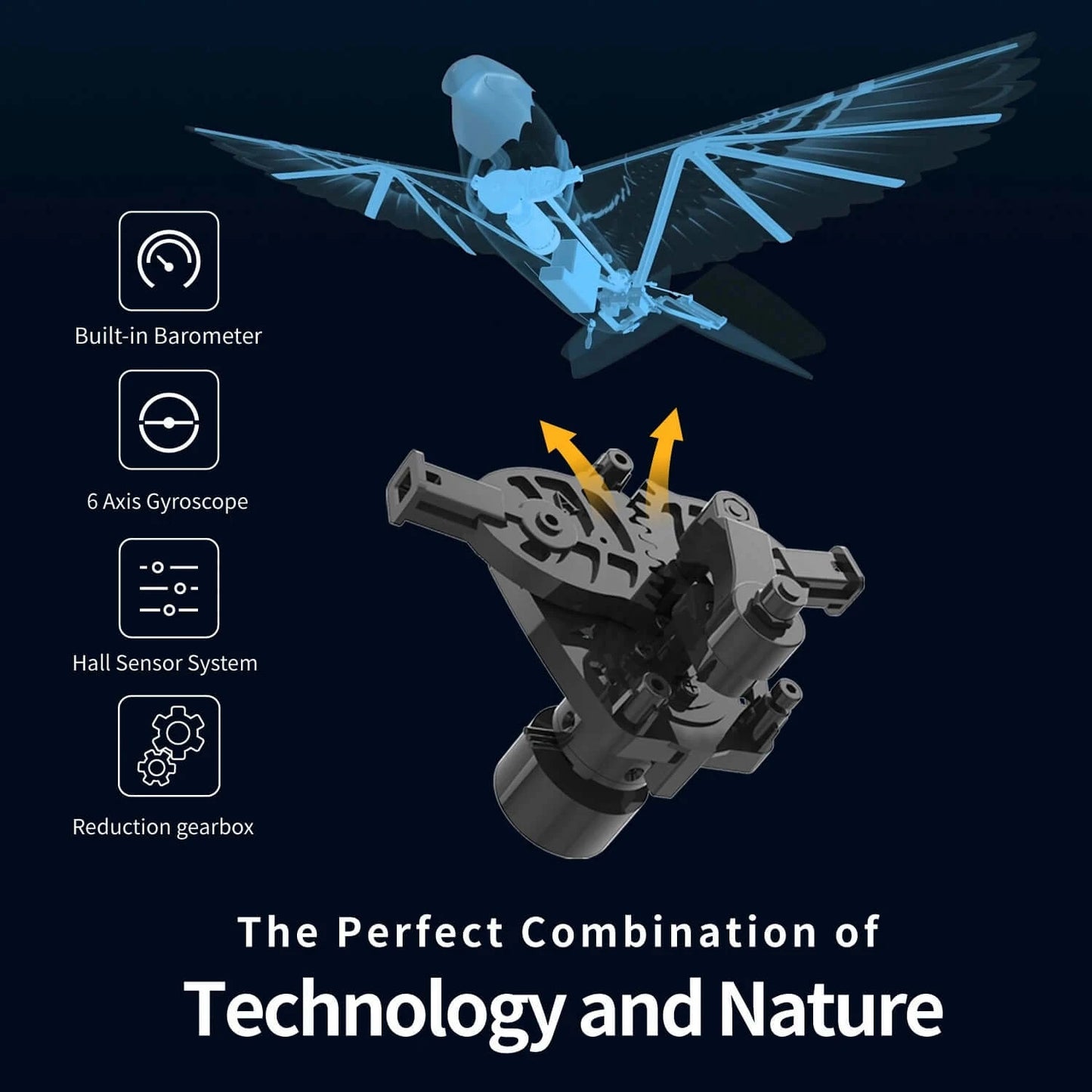 • Avancée Aile BattementUtilise un système de capteur Hall pour une fréquence de battement d'aile authentique, reflétant le vol d'oiseau réel.