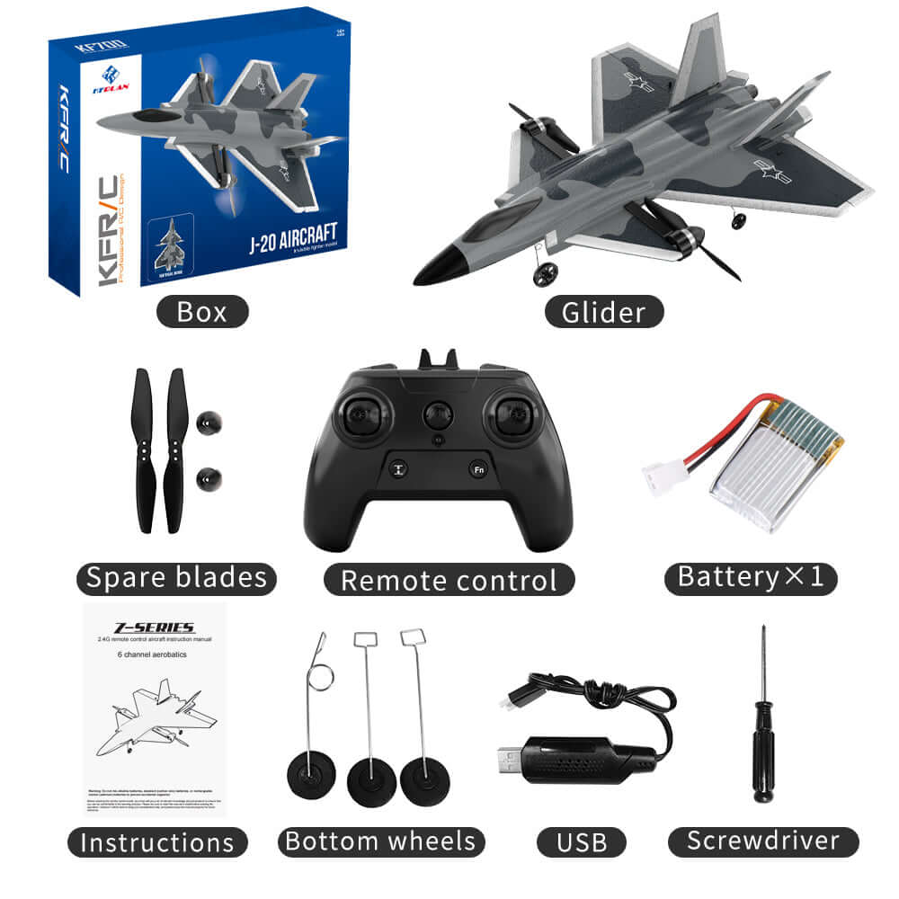 KF700 J-20 4-Channel Brushless Glider RC Plane, 300m Range, Camouflage Gray | KIDS TOY LOVER