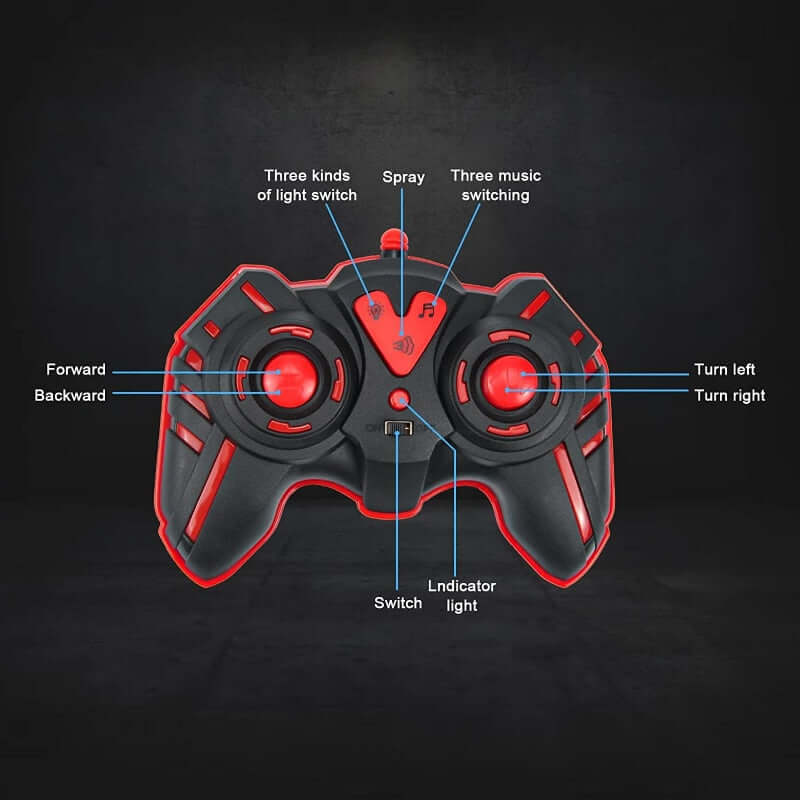• Fonctions de contrôle : Capable d'effectuer des fonctions d'avance, de recul, de virage à gauche, de virage à droite, de roulis, d'éclairage, de musique et de pulvérisation.