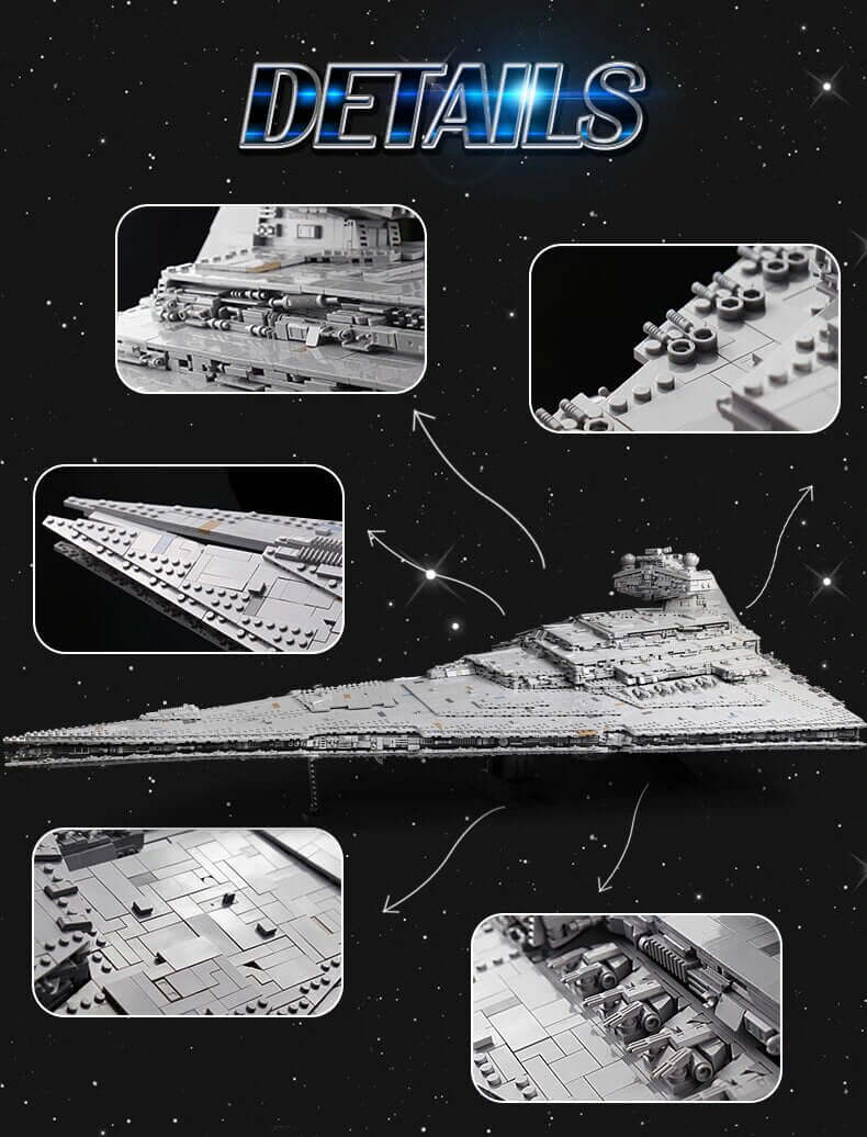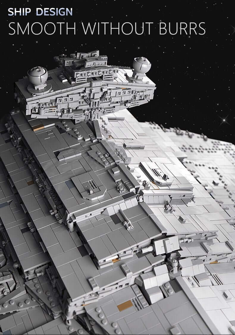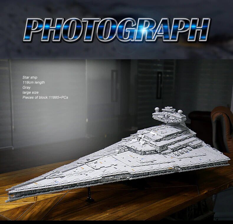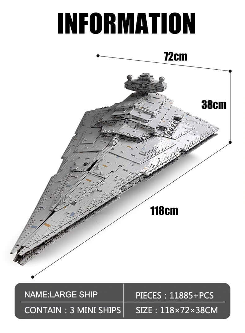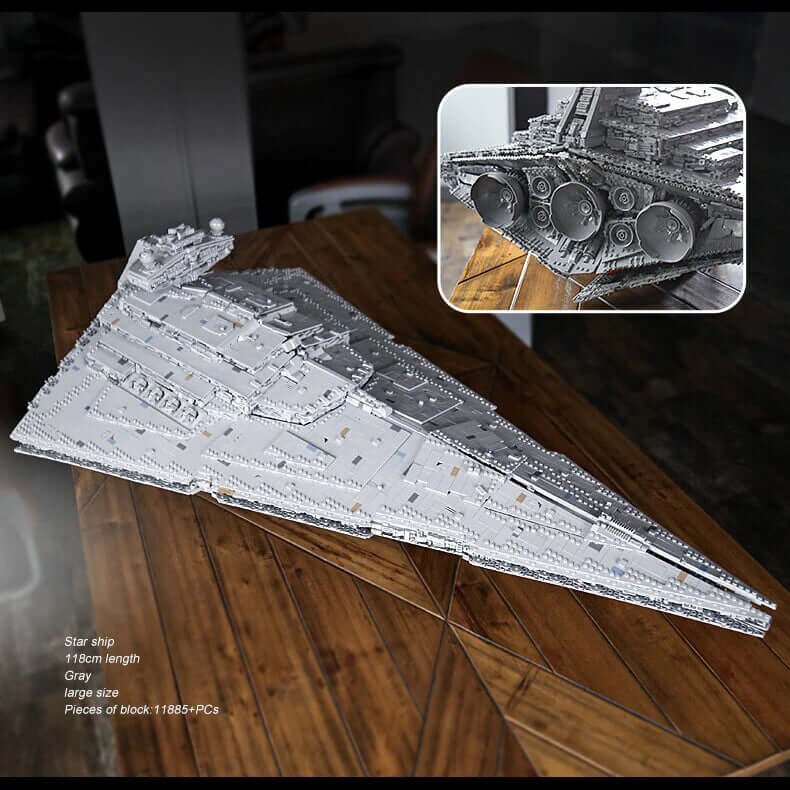 サイズ及び詳細: 118 cmにまたがり、11,885個を備えたこのモデルは、3隻のミニ船と多数の複雑なディテールを取り入れており、スターウォーズ愛好家にとってコレクターの喜びとなっています。