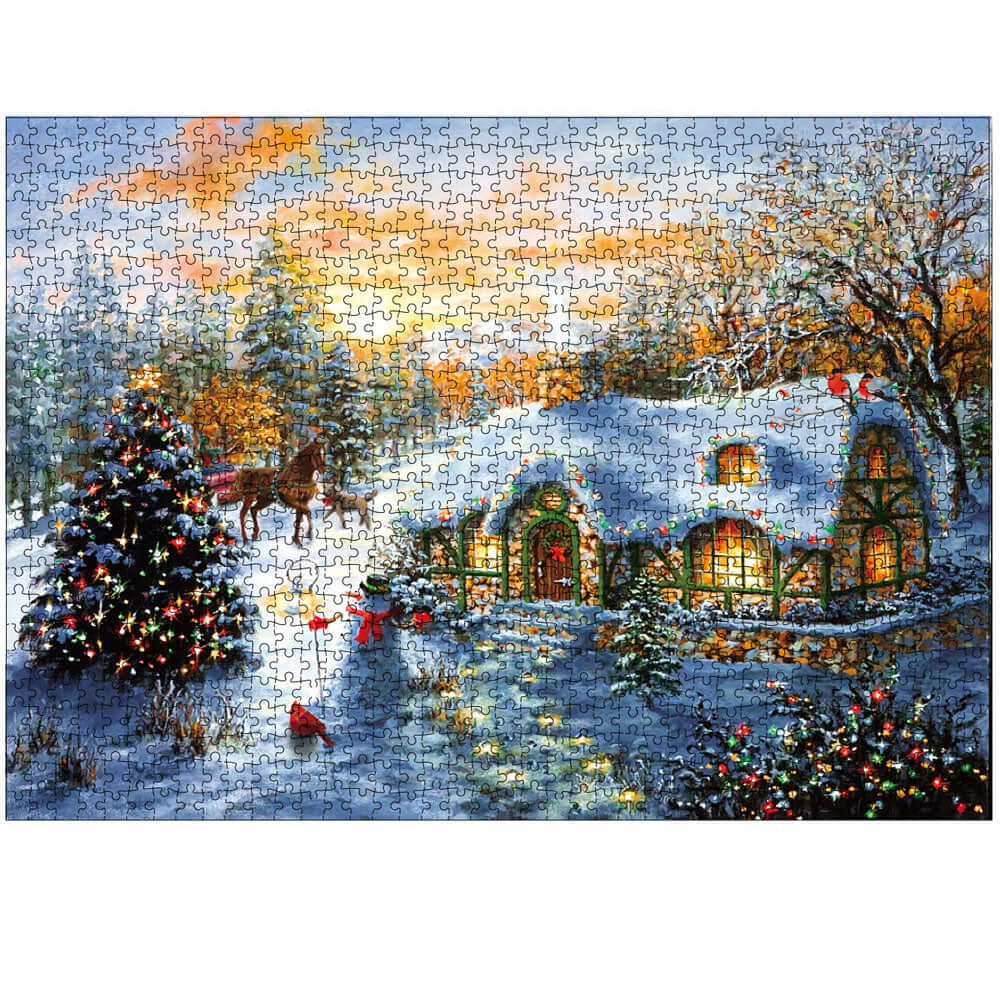 - スタイリッシュなボックスで提示された1000ピースのジグソーパズルで静かな雪の夕日を体験してください。