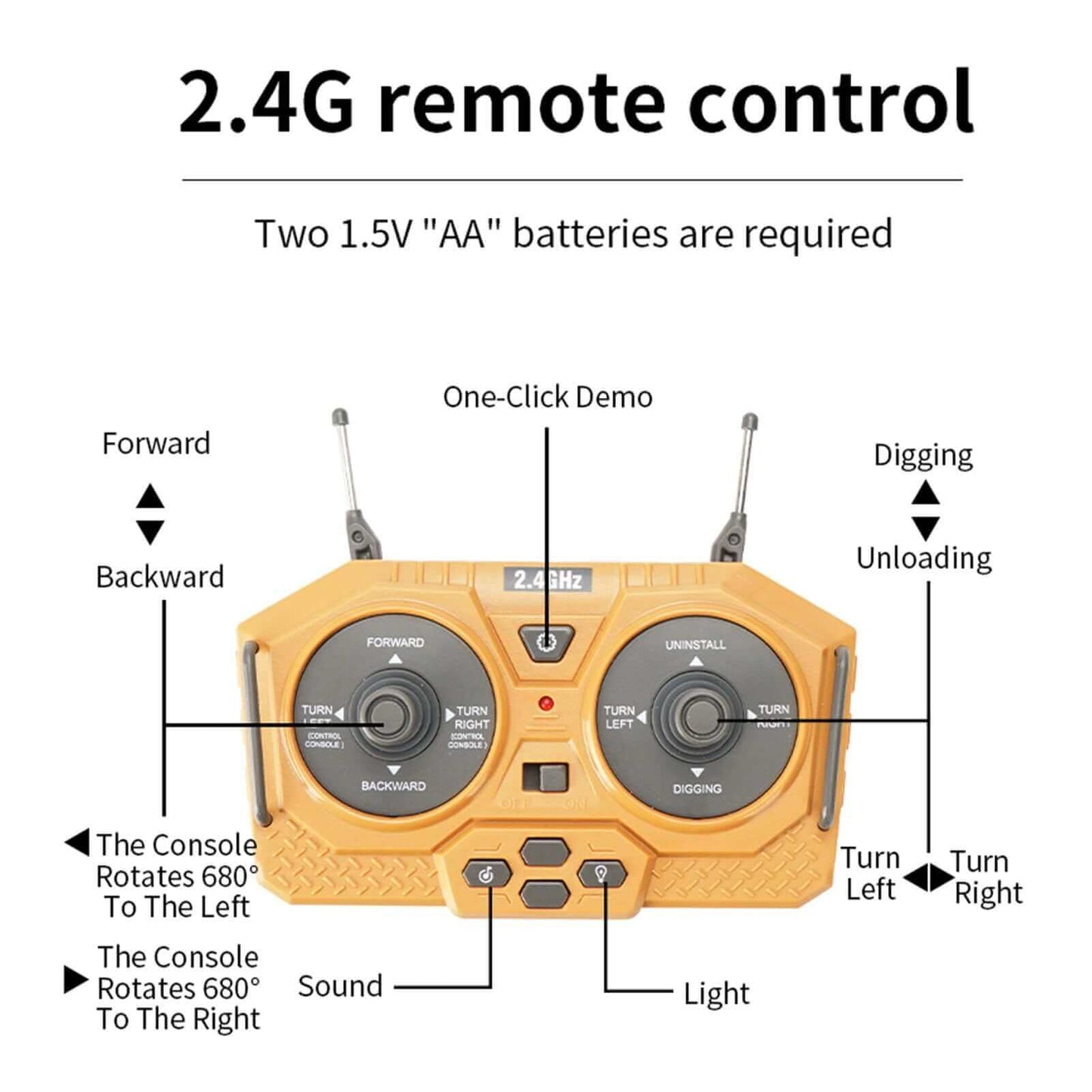 ビルドの楽しみ: ライトと音楽を備えたインタラクティブ1:20 RCショベル-KidsToyLoverで学び、プレイする