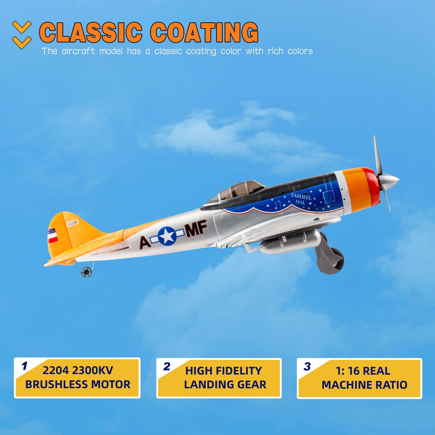 The MF-A84 RC Warbird is a 1:16 scale replica aircraft designed for both beginners and seasoned pilots. Featuring a powerful brushless motor, smart stabilization, and camera-ready functionality, it delivers smooth, stable, and exciting flights with realistic warbird aesthetics.